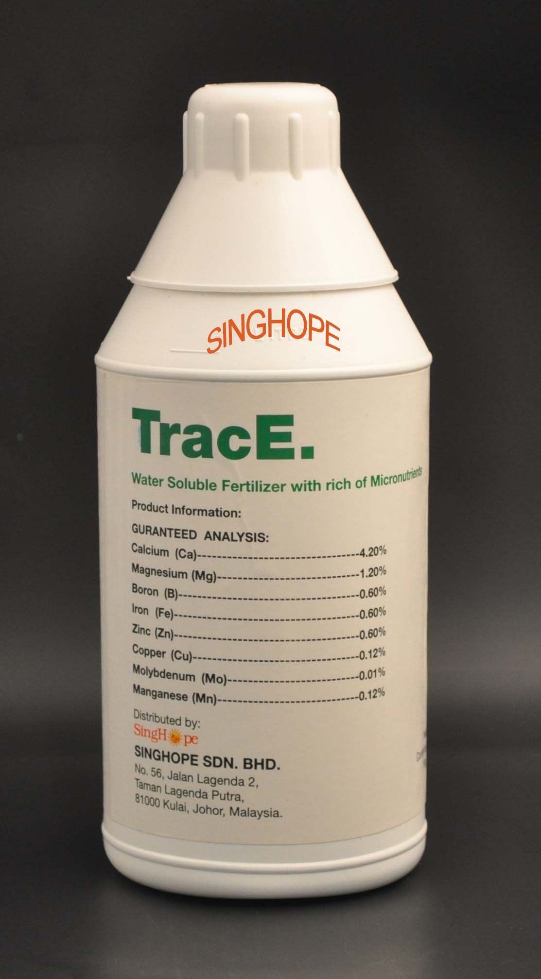 TracE. Posted by singhope On 30 March, 2018 11 June, 2021 Home » Products » TracE. Trace Element, Small drop big impact SKU: 1L x 16 Product Description high content of water soluble trace element. See also different: NATURFOS CAB Afterfruit® BETTASOIL Soil Rejuvenator Bettasoil unlock your tied fertilizer and balance your soil moisture and air. 释放土埌中被锁住的肥料,调和土埌空气和水分比例. << return to products